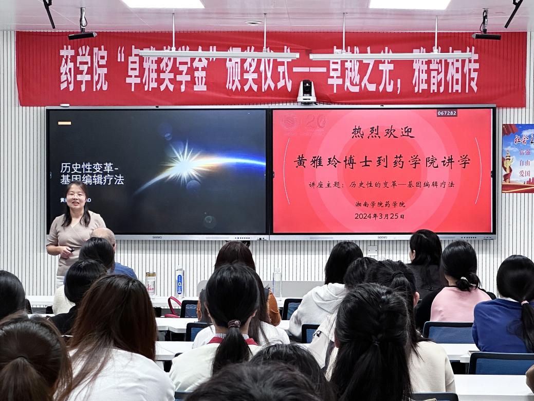 本网讯(通讯员 柯文浩 )为加强科研学术交流,开阔师生科研视野,培养复合型高水平人才,3月25日下午,药学院特邀客座教授、博士黄雅玲于笃行楼518教室开展“历史性的变革-基因编程疗法”学术讲座,药学院院长张辉主持本次讲座。