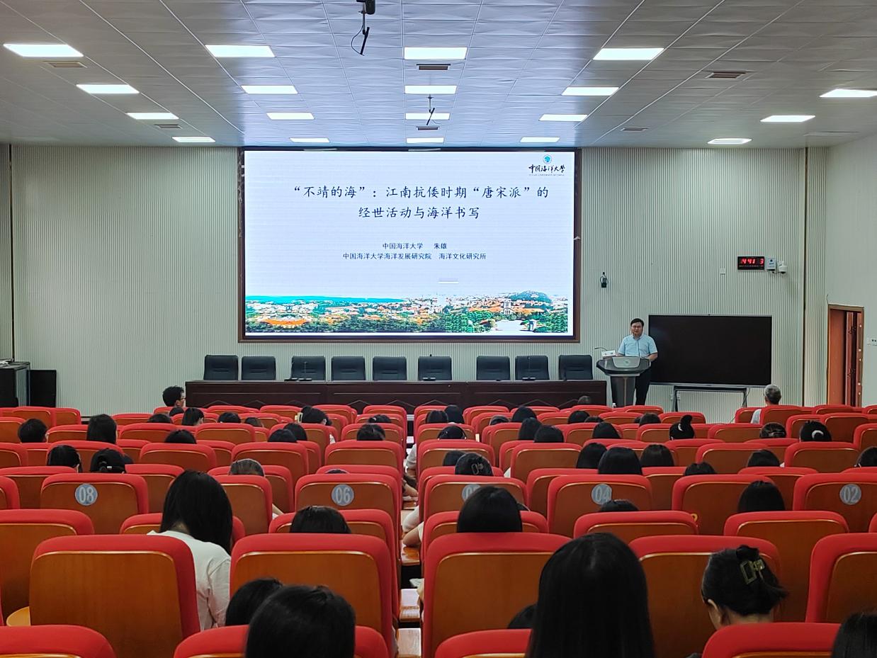 4月17日下午,朱雄开展“不靖的海:江南抗倭时期‘唐宋派’的经世活动与海洋书写”主题讲座。他从海洋视域下“唐宋派”作为文学流派进一步凸显的意义出发,就唐宋派概念做了详细阐述,通过讲解古诗的形式,强调“唐宋派”为抗倭斗争提供了精神支持。他着重强调了“唐宋派”海洋经世活动与诗文创作的价值与影响,认为其对后世的海洋开发与文学创作产生了重大影响。此外,他还同参与讲座的师生进行深入交流。