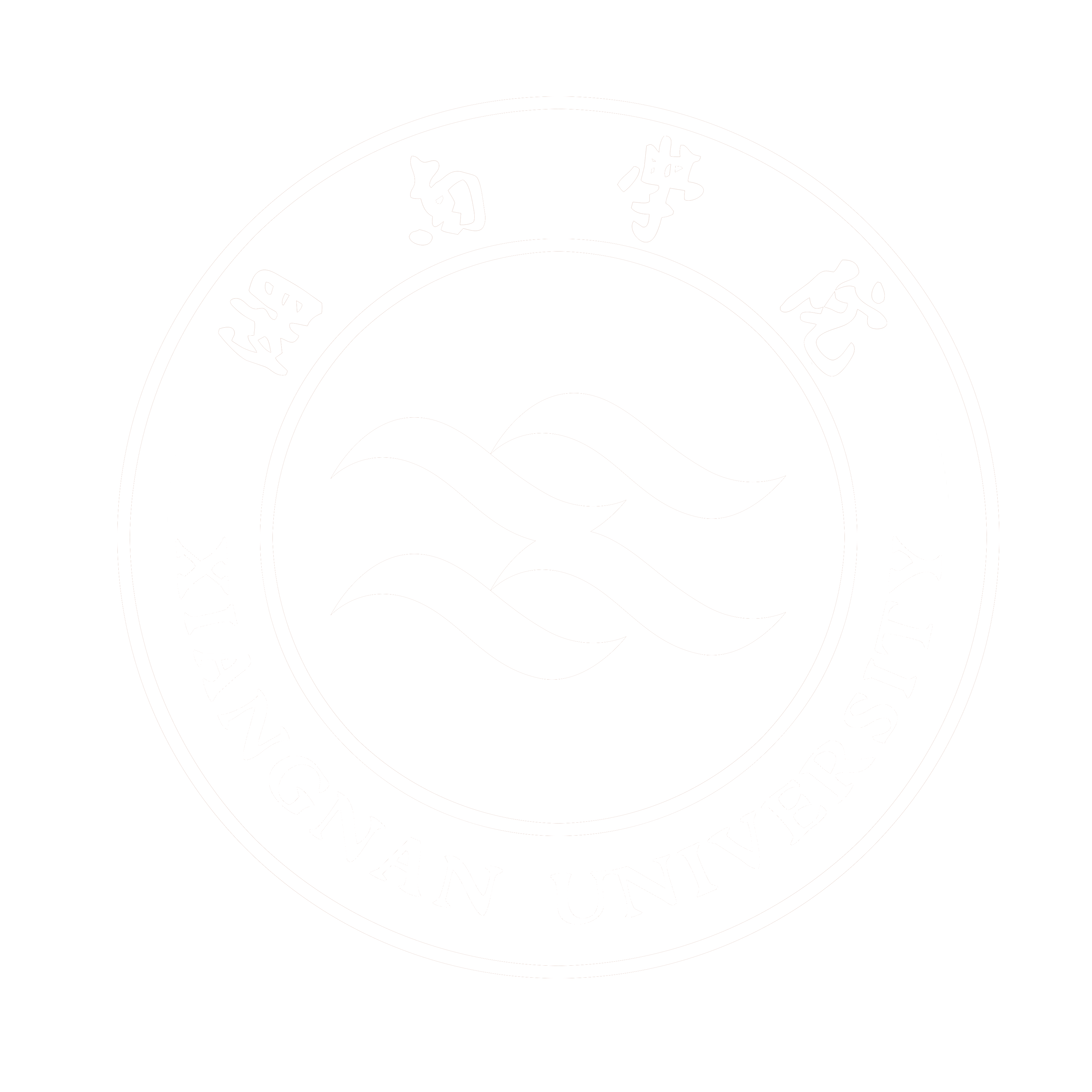 标志如同一本本舒展的书卷,象征着大学是知识的海洋。四个海豚的图形,象征着学生在知识的海洋中遨游。