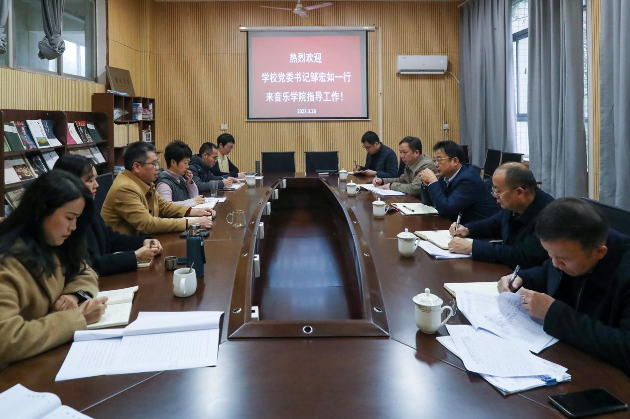 在音乐学院调研时,邹宏如指出,音乐学院办学历史悠久、有传统的优势和深厚的影响,在丰富校园文化建设作出了重要贡献。他强调,学校党委高度重视和支持音乐学院发展,要求学院领导班子要把对音乐学院的关心和厚爱传递到每一位教师,把支持转化为发展的动力;要坚定信心,抢抓机遇,激发内部潜能,找差距、补短板;要强化内涵建设,找到新的立足点,做好各专业学科交叉融合,强特色、造高峰,要优化内部管理,坚持制度管人、情感化人,扬正气、压邪气。