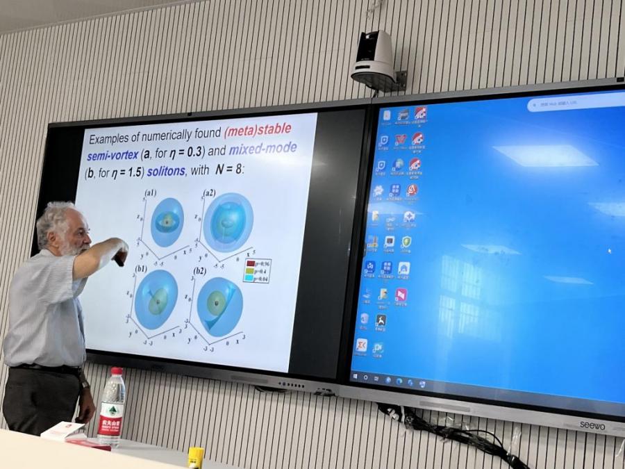 上午10:00-12:00点,Boris A. Malomed教授以“Fundamental nonlinear equations in physics, and their fundamental solutions”为题在4号教学楼313开展学术报告,本次报告由物理与电子电气工程学院邓海明副院长主持,我院李磊俊书记、蒋纯志院长、黄健全教授、林安平副教授、李欣茂老师、陈亚琦老师、孔超老师、李金晴老师以及感兴趣的学生参加了本次讲座。