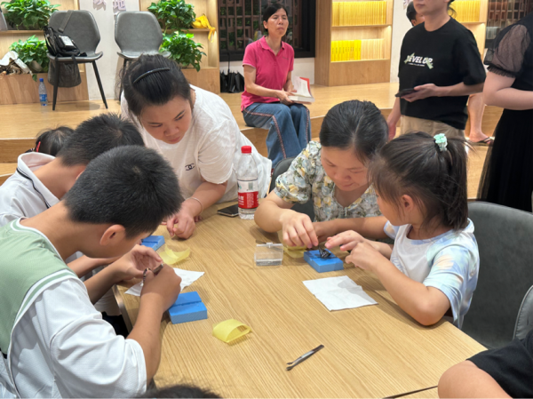 昆虫科普系列展示的昆虫标本和活体让孩子们发出一阵阵惊震叹,这些在人类身边又通常被忽略的生物多样性、适应性和生存本领引起了学员们极大的兴趣,动手制作昆虫标本的环节更是让孩子们欣喜。