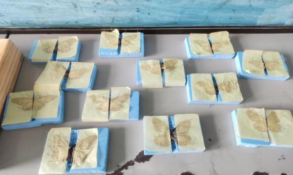 2023年7月2日,实践团成员为学生带来生活中的花仙子的科普内容。蝴蝶,蛾子是我们身边最常见最漂亮的一种昆虫,它们的颜色样貌多种多样争奇斗艳。自然学堂科普团队带领青少年观赏精美绝伦的昆虫标本;详细介绍有关昆虫的知识、解释如何区分“蛾与蝶”的三种方法;学习制作昆虫标本,封存自然之美,激发青少年进一步探索昆虫世界的兴趣、培养探索精神与动手能力。
