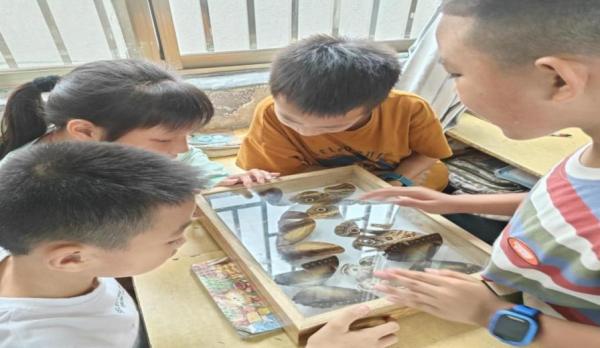 图为小朋友们观察蝴蝶标本