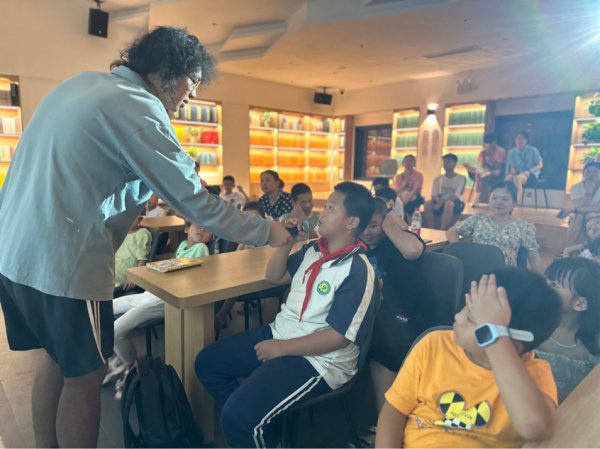 图为团队段鑫鑫为小朋友科普蚊子为什么要吸血