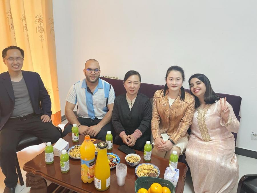 贺莉萍亲切询问了Mohamed老师在学校的教学和在郴州的生活情况,对其及家属致以新年的问候和祝愿。对他为我校教学工作的贡献表示诚挚的感谢,对他在传递中西方文化所起到的积极作用给予高度评价,并祝愿他在湘南学院工作、生活愉快。Mohamed老师表示,虽然身处异国他乡,但十分适应和喜欢在郴州的生活。他很喜欢学校友好的工作氛围,与教学团队合作顺利,与学生相处融洽,表示能在我校工作生活非常开心幸福。