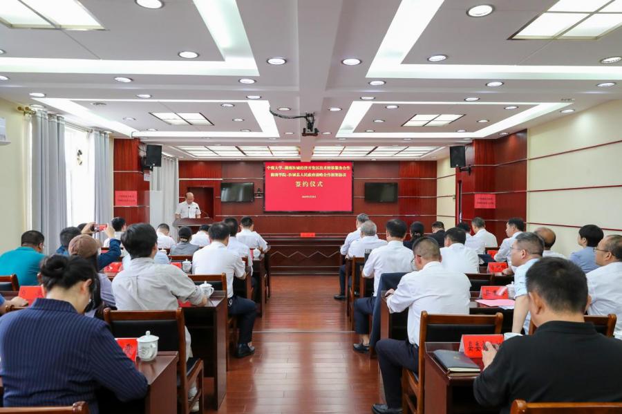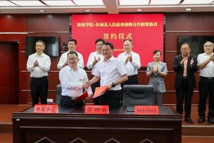 签约仪式上,邹宏如对汝城县的经济建设、文化底蕴、民生事业等给予了高度评价。他指出,我校始终以开放的理念、务实的举措、扎实的作风,聚焦地方产业转型升级需求,对接了一批地区、签订了一批协议、引进了一批人才、落地了一批项目,全力打造校地融合、校城共生的“湘南样板”。今后将进一步深化与汝城县的校地合作,努力实现校地优势互补、资源共享、发展共进、互利共赢。