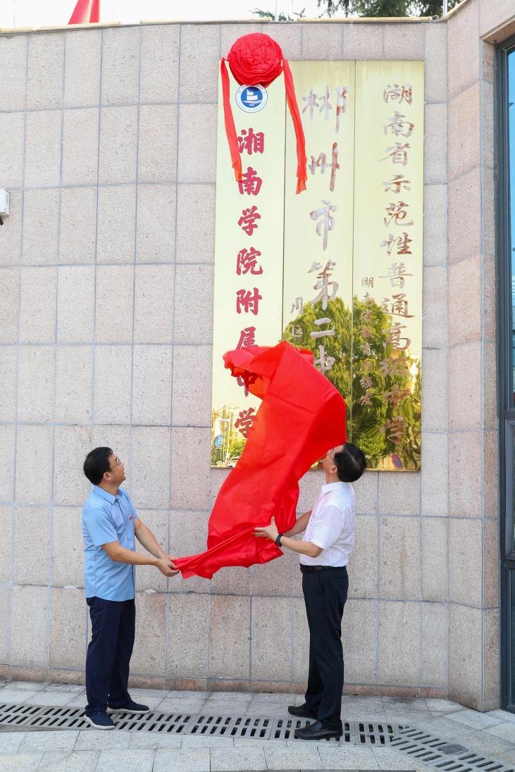出席仪式的领导分别在郴州市第二中学、湘南中学、郴州市第六中学观山学校为“湘南学院附属中学”“湘南学院附属中学(南校区)”“湘南学院附属观山学校”揭牌。