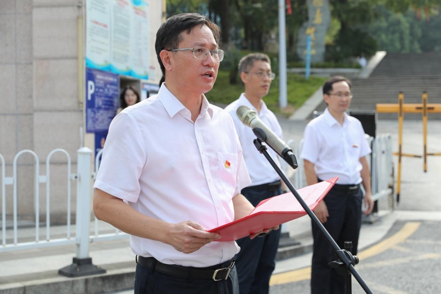本网讯(通讯员 李冰婧 贺炜鹏 摄影 佘伟灏 张可馨 袁语婷)9月5日,郴州市第二中学、湘南中学、郴州市第六中学观山学校分别挂牌成为湘南学院附属中学、湘南学院附属中学(南校区)、湘南学院附属观山学校,正式开启与我校的产学研用合作。