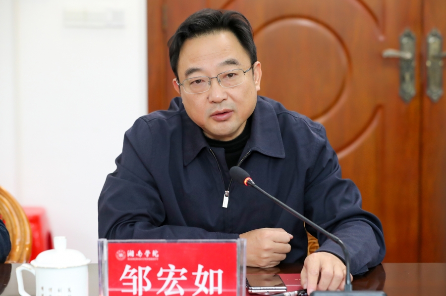 仪式上,邹宏如对此次签约表示祝贺,对郴州思科职业学院长期以来的支持表示感谢。他指出,为郴州的经济社会发展培养人才,是郴州思科职业学院与我校共同的使命与愿景。学校各部门单位要站在更高的高度和层次对待此次合作,在校际合作、服务地方上开启新的篇章。他强调,落实落细战略协议,要有具体的行动与举措,相关部门单位要把学校党委推进合作的战略理解好、具象化,落实双方在教育资源、师资队伍、发展与就业平台等方面的共享共建,让合作富有成效,共同打造湖南省“职普融通”的典范与品牌。