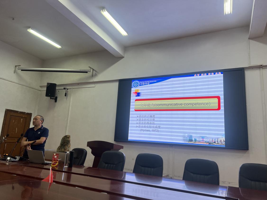 本网讯(通讯员 曾婧)10月25日下午,中南大学外国语学院教授、博士生导师李清平受邀来我院讲学。讲座题目为“人工智能下外语教师的发展”,由外国语学院院长李建中教授主持,外国语徐全体教职工参加了本次的学术活动。