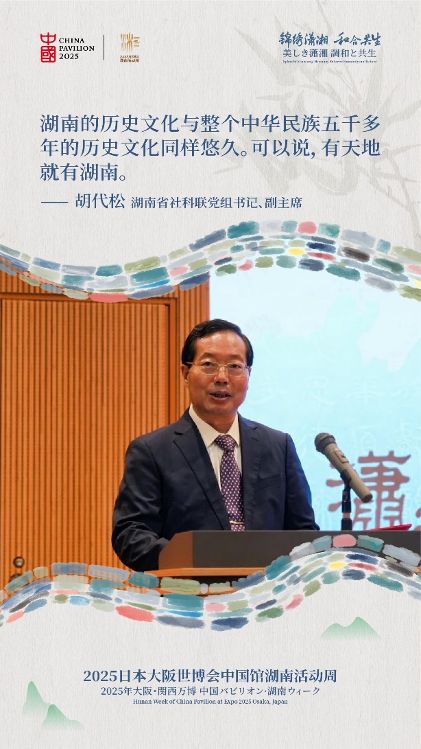 湖南省社科联党组书记、副主席胡代松先生在主持人语中有一段话:“‘湖南’的名称始于唐代,宋代湖南分属荆湖南路和荆湖北路,元代属湖广行省,明代属湖广布政使司,清代设置湖南布政使司、湖南巡抚,‘湖南’名称正式成立。湖南虽然建省较晚,但是这一方水土,这里的人民,是从远古时期开始就始终存在的。湖南的历史文化与整个中华民族五千多年的历史文化同其悠久。可以说,有天地就有湖南。”